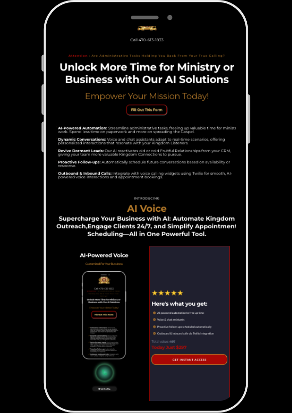 Supercharge Your Business with AI: Automate Kingdom Outreach,Engage Clients 24/7, and Simplify Appointment Scheduling—All in One Powerful Tool.